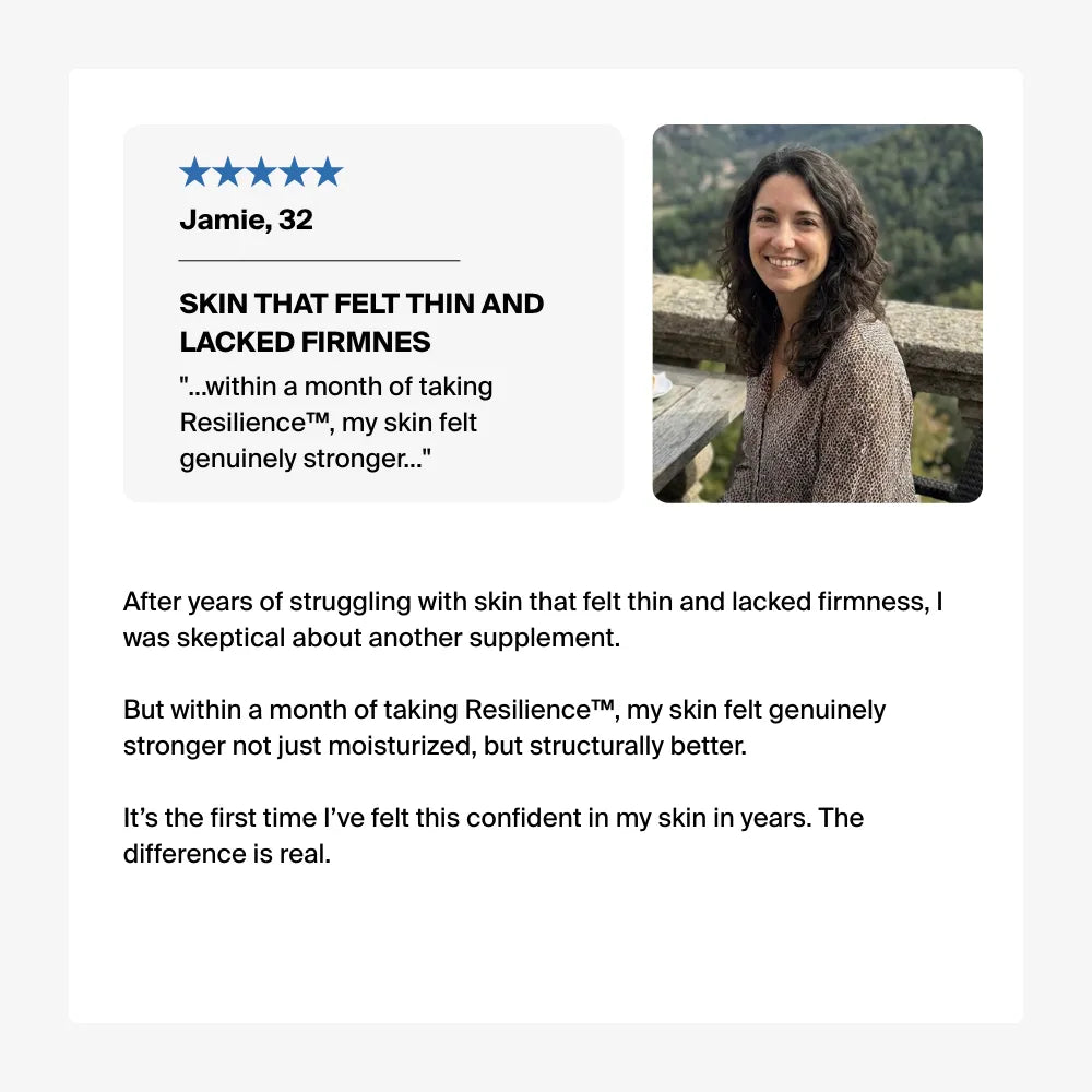 Resilience™ supports the structures beneath the surface that influence elasticity and recovery over time because real change doesn’t happen all at once.